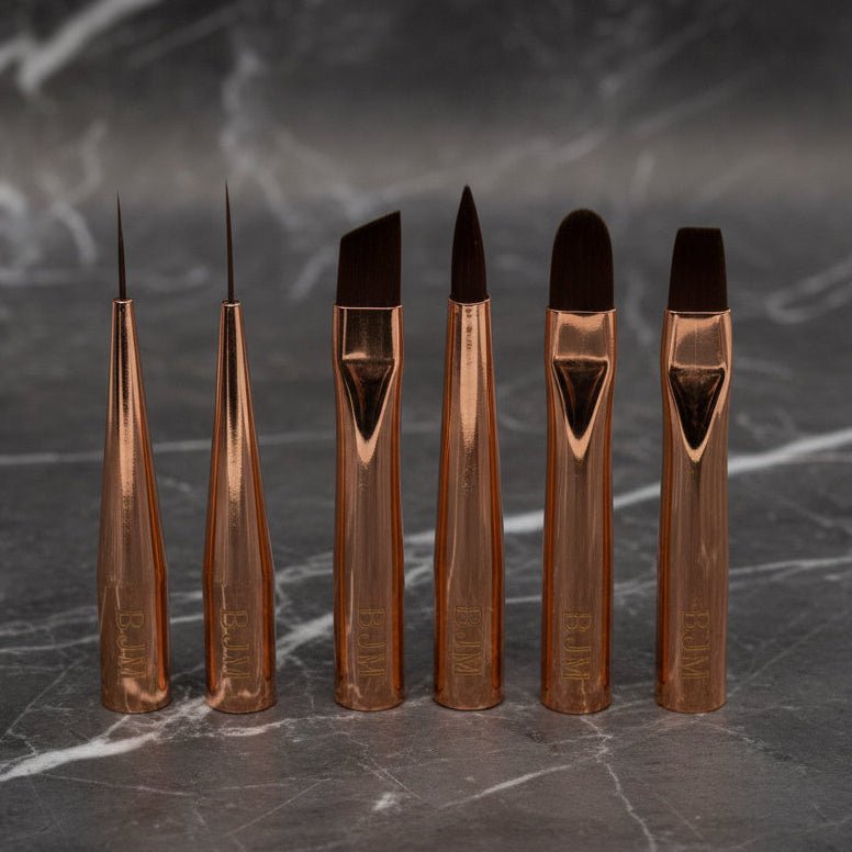 The brushes are crafted with high-quality synthetic fibers, engineered specifically for professional nail services. Synthetic bristles are ideal for salon environments: they are easy to clean, resistant to solvents, and maintain their shape over time. They provide the right balance of flexibility and control, making them suitable for rubber bases, builder gels, ultra-fine lines, and precise architectural work.